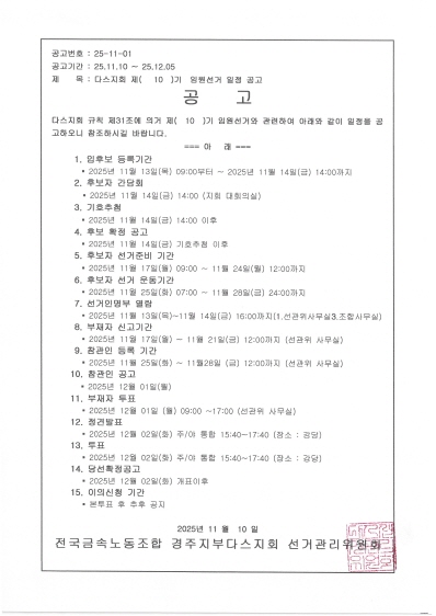 다스지회 제 10기 임원선거 2차투표 일정 공…